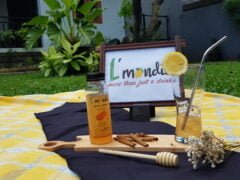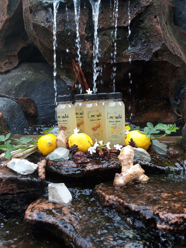 Lemondu is a soft drink made from water, lemon juice, honey and spices.Lemondu has 7 variants: Original, lemongrass, ginger, cinnamon, anise, cloves and nutmeg